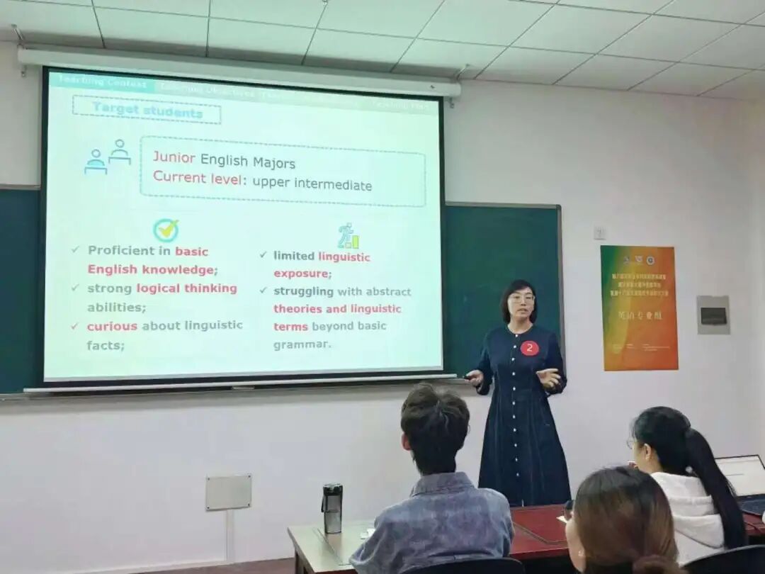 本次大赛由河南省教育厅主办,河南省高等教育学会外语教学研究分会协办,共有全省37所本科高校的优秀外语教师同台竞技。张茜老师在省级复赛中总分排名第一,顺利晋级决赛。尽管决赛中略有遗憾,但她扎实的教学功底与创新的教学理念仍赢得了评委的高度认可。张茜老师的课堂秉承“源于教材,超越教材”的理念,注重启发引导与师生互动,营造了良好的学习氛围。她将课程思政元素自然融入教学案例,实现了知识传授与价值引领的有机统一。
