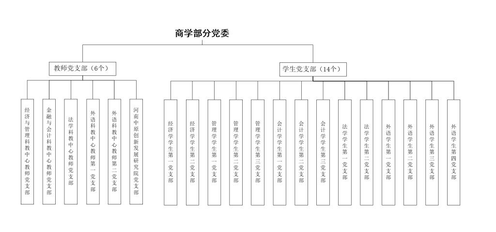 商学部分党委现有20个党支部。其中,教师党支部6个,学生党支部14个。