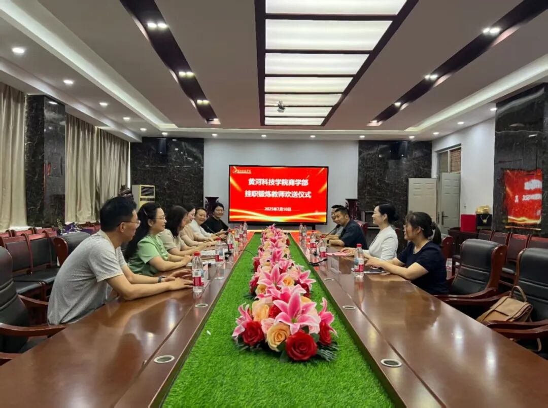 7月10日,商学部在129会议室举行了为即将赴企业挂职锻炼的皇甫尚华老师的欢送仪式。商学部党委书记郑月、副书记、副部长孙常辉,挂职单位董事长刘鹏阁一行、产教融合办副主任常永佳和教师代表邢心乐等参加,仪式由商学部副书记、副部长王晓梅主持。