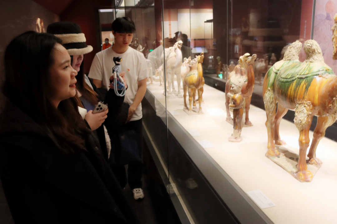 河南博物院馆藏文物数量丰富、品类齐全,从远古彩陶到商周青铜,从唐宋瓷器到明清书画,每一件文物都凝结着先民的智慧。学员们依次参观了“远古家园”“华夏王都”“隋唐大运河”等展厅,近距离观摩了贾湖骨笛、妇好鸮尊、云纹铜禁等“镇院之宝”。当驻足于记录着中原文明发展脉络的文物前,学员们不时交流讨论,在触摸历史温度的过程中,对“何以中国”的文明根脉有了更深刻的理解。