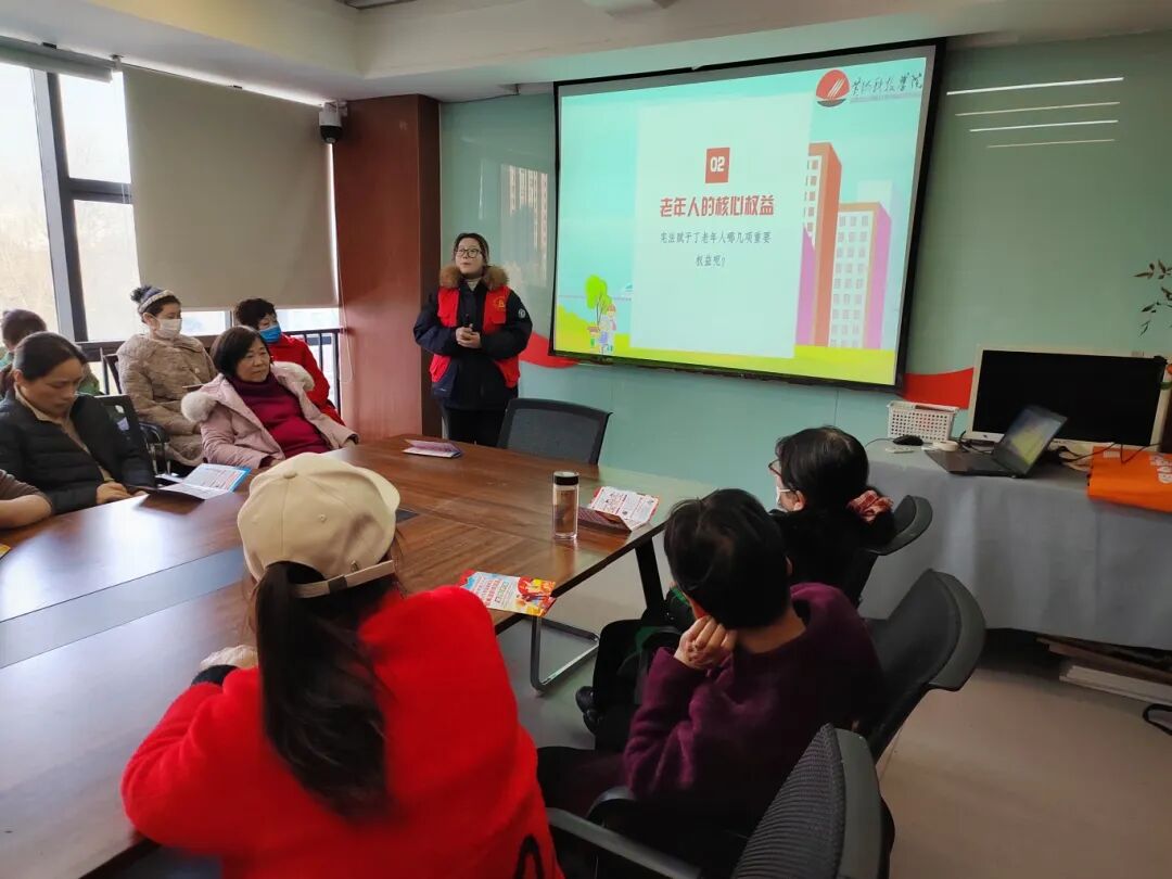 活动伊始,宣讲团成员为在场社区居民发放国家宪法日宣传册,宣讲人易徐可以PPT的形式分别从宪法基础知识、宪法保障的老年人核心权益、常见风险与维权方式等方面展开讲解。在宪法基础知识方面,向在场社区居民讲解宪法的定义和意义,活动过程中,易徐可与社区居民充分互动,提问大家是否知道宪法赋予了老年人哪些重要的权益,社区居民纷纷抢答。接着,法治宣讲团成员通过演绎保健食品诈骗和扫描二维码领取奖品等情景剧来展现生活中常见的诈骗行径,并普及防诈骗和维权途径,吸引在场社区居民认真观看学习,并获得阵阵掌声。最后,法治宣讲团成员组织大家开展投壶趣味游戏,并为聆听本次宣讲的社区居民分发宪法钥匙扣、中华人民共和国宪法、小红旗等纪念品。
