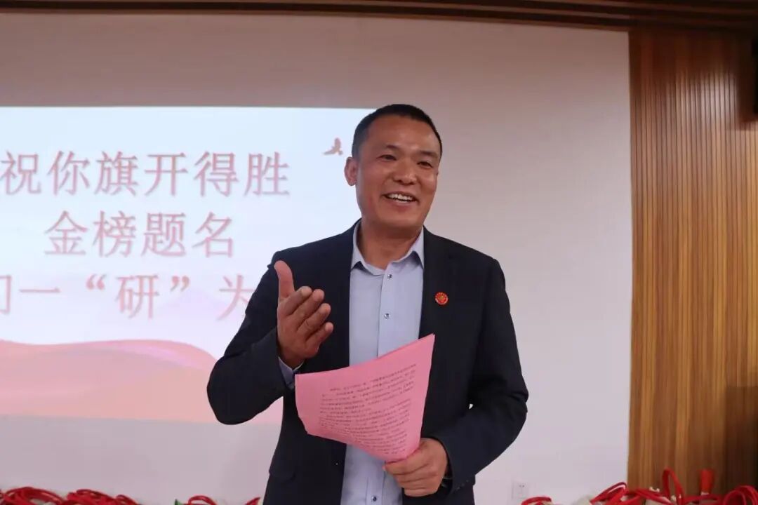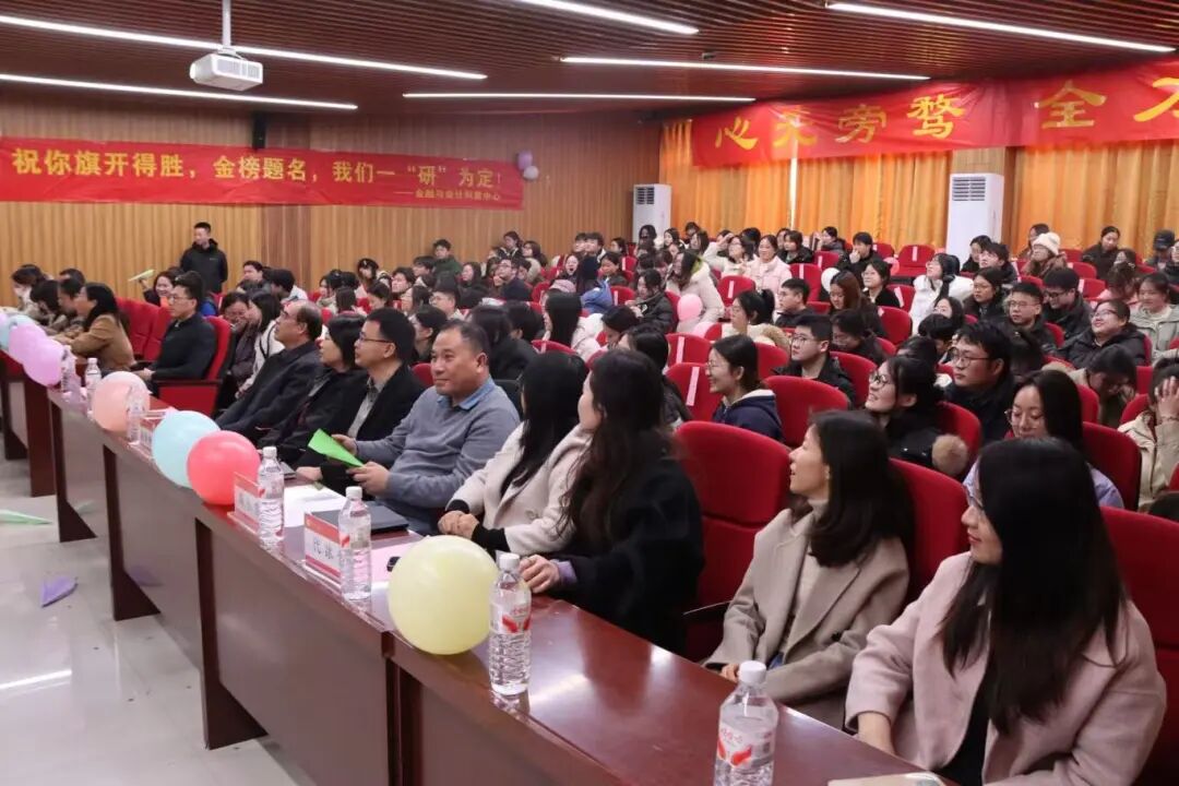 张景忠代表学部领导班子发言,他肯定了考研学子们长期以来的坚持与付出,指出每一个人都是勇敢追光的人,提醒大家掌握方法让每一份努力都精准地发力,并暖心鼓励大家再忙,也要保持基本的睡眠,再累也要散散步,做好拉伸,再没有胃口,也要保证一日三餐,保持身心健康精神饱满地走向考场,祝福大家一战成硕,马到成功。