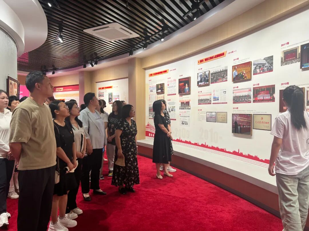 黄河科技学院党建馆系统呈现了学校党建工作的历史脉络,“寻求、探索、创新、提升”四个篇章分别以史料实物、图像文字等形式还原展示学校以高质量党建引领教育事业高质量发展的党建工作成效。在讲解员的带领下,大家回顾了学校从“郑州市高等教育自学考试辅导班”到全国一流的中国特色社会主义民办高校-黄河科技学院、从办学初期的“十年找党”到“以高质量党建促进学校全面发展”的发展历程。在坚定不移跟党走的道路上,学校党建工作硕果累累,先后获得“河南省高等学校先进党委”“河南省高等学校党建工作先进单位”、“全省先进基层党组织”等荣誉称号。从展出的百余张照片中,同志们见证了黄河科技学院在党的领导下从小到大、从无到有的艰苦历程,直观地感受到了学校的沧桑巨变和日新月异。