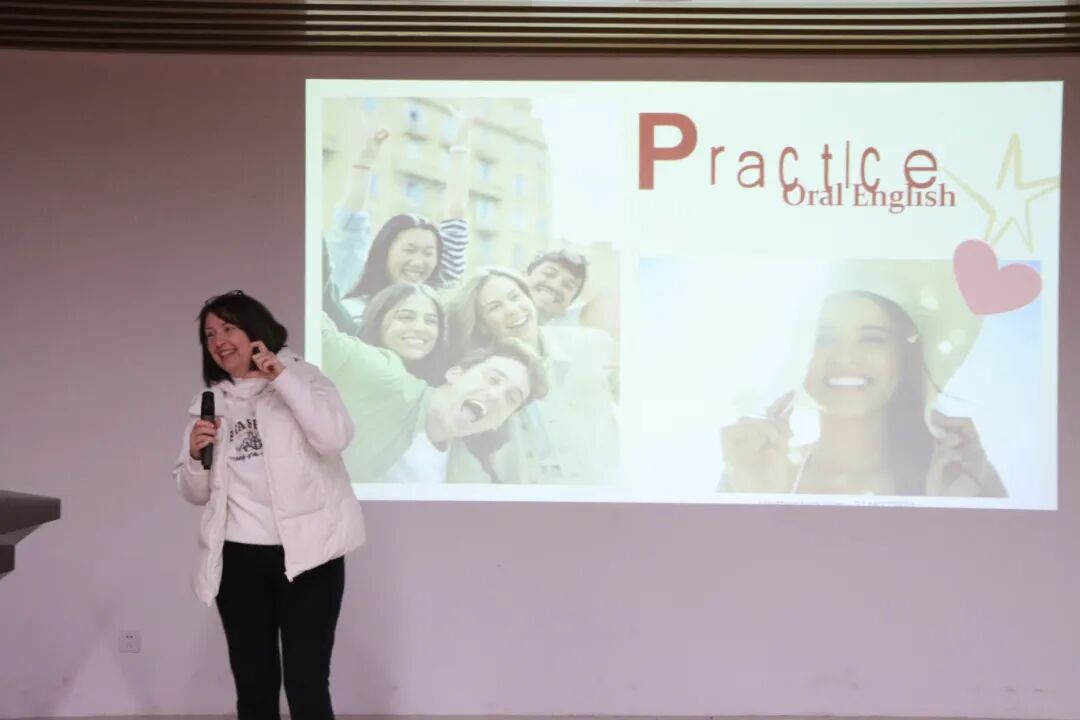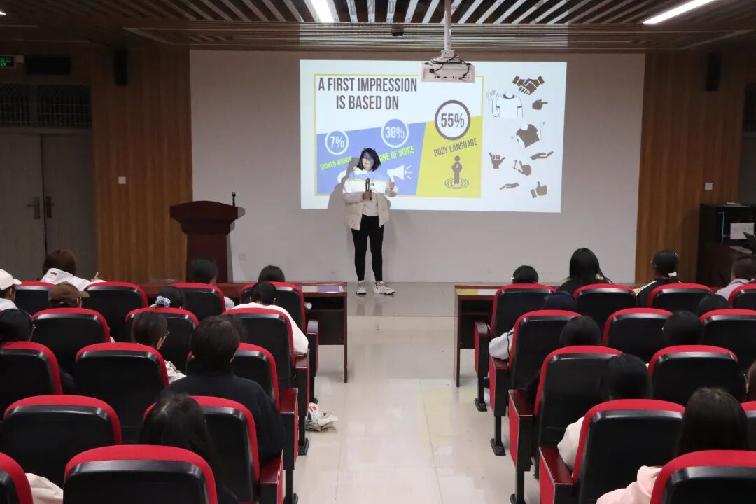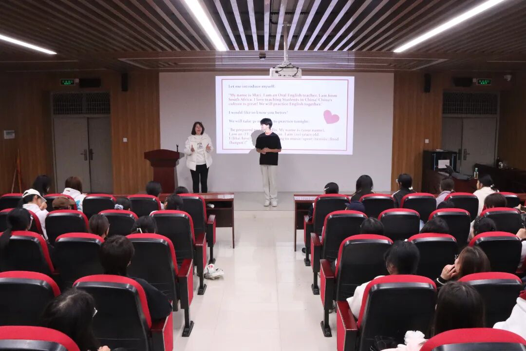 活动伊始,阎佳星会长以流利的双语致辞,向新生们表达了诚挚的欢迎。她表示,本次见面会不仅是一次相互认识的机会,更是打破新生与外教之间沟通隔阂的重要桥梁,让大家在真实的语言环境中提升表达能力,感受多元文化的魅力。