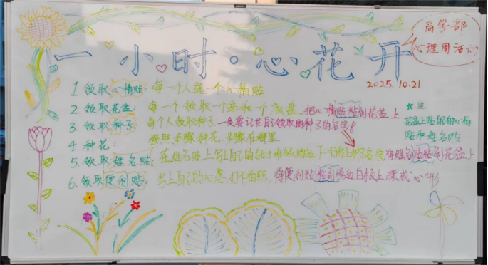 10月21日的商学部教学楼,一场名为“一小时·心花种”的心理健康周主题活动热热闹闹开了场。以“种植希望,书写成长”为核心,这场活动没把“呵护心灵” 停在嘴上,反倒变成了同学们能亲手摸、亲手做的温暖事儿。