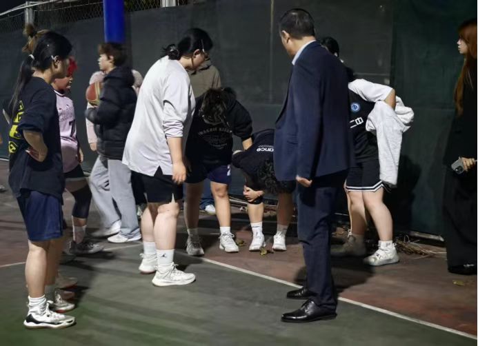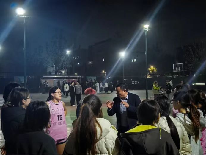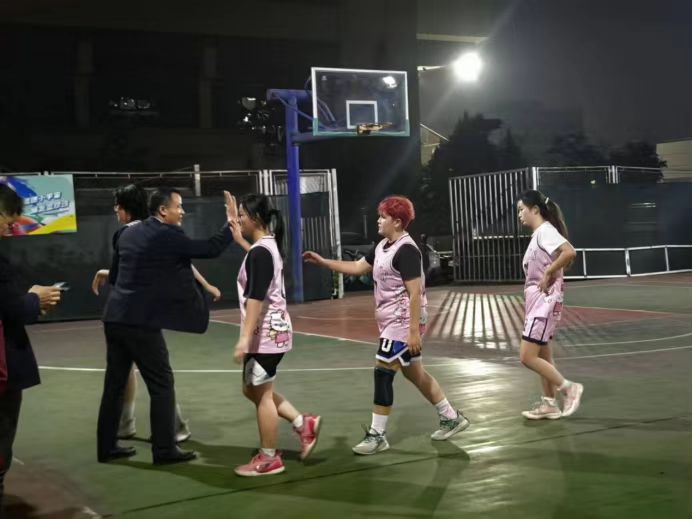 终场哨响,冉主任笑着向走来的队员们伸出手——清脆的击掌声响在球场,是对姑娘们全场拼劲的肯定。“打得漂亮!”简单的称赞里,藏着与球员们并肩作战的欣喜,这场胜利的余热,在秋夜的灯光下愈发热烈。