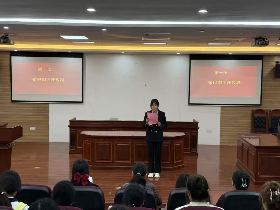 大会伊始,张琳娜主任发表致辞。她着重强调,宿舍是学生在校生活的重要阵地,是校园管理中最根本的环节。针对未来工作,她提出三点要求:一是希望全体楼长、层长和定岗干部坚守服务初心,始终以保障同学权益、营造良好宿舍氛围为己任;二是尽职尽责,定岗干部要每日做好所负责宿舍的检查与管理工作,确保各项要求落实到位;三是创新突破,积极推进宿舍“一楼一品”特色活动,创新日常管理模式,邀请主任和老师参与宿舍检查等形式,丰富宿舍文化生活,提升宿舍管理活力。然后,商学部宿管会上一届主席安成空分享了自己在宿管会的工作经验,从日常事务处理到团队协作管理,干货满满,为新一届成员提供了宝贵的借鉴。现任主席刘佳莹则对过去一年的工作进行全面总结,既肯定了取得的成绩,也正视了存在的不足,并对未来宿管会的发展方向作出清晰规划,展现出新一届主席的责任与担当。接着,商学部宿管会上一届楼长代表张宇康结合自身工作经历,向新一届楼长和干部传授了宿舍管理中的实用技巧与沟通经验;现任楼长代表卢冰菡也发表发言,表达了接好工作接力棒、全力做好宿舍管理工作的决心。