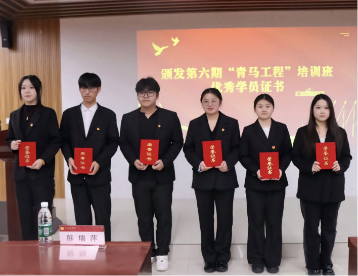 接着,张琳娜宣布第六期“青马工程”培训班优秀学员名单,并由出席仪式的全体老师颁发荣誉证书。