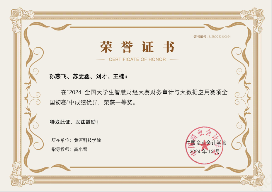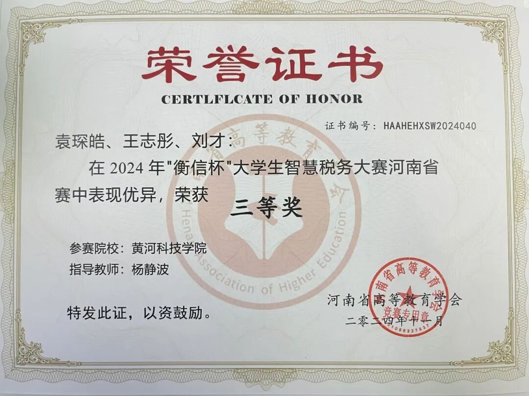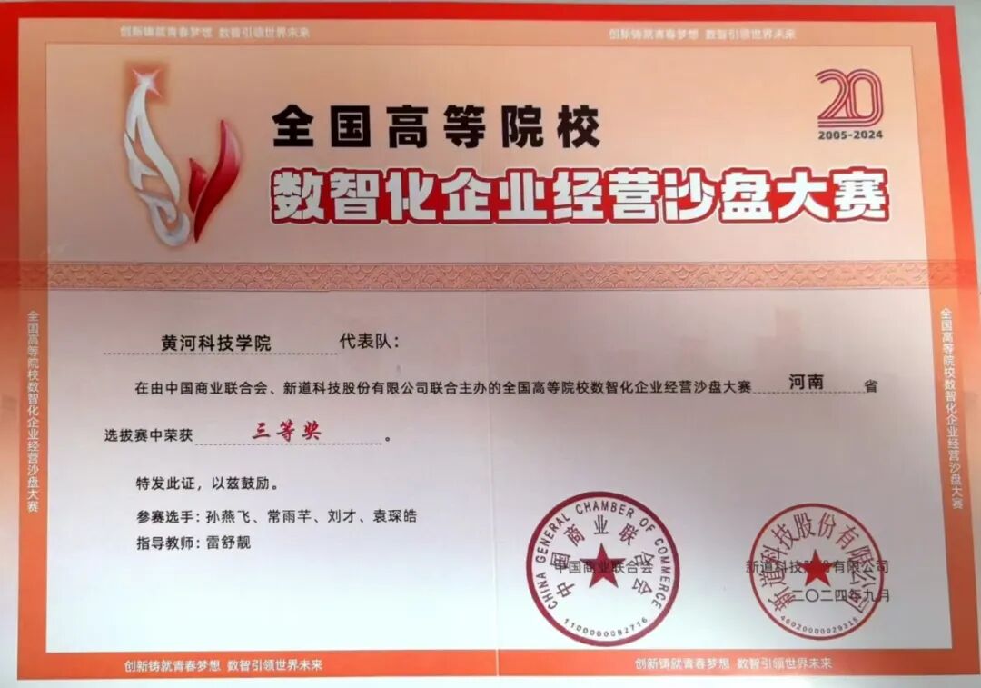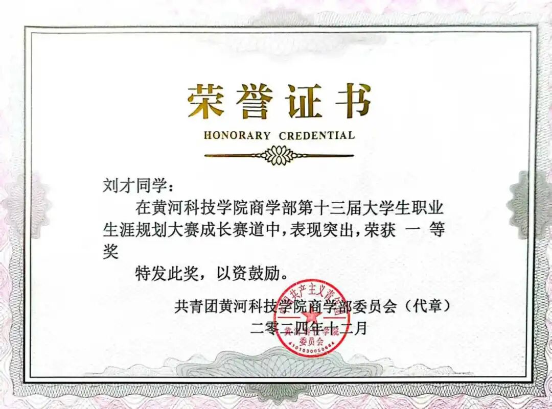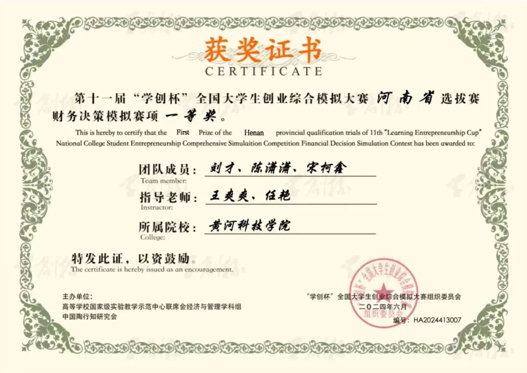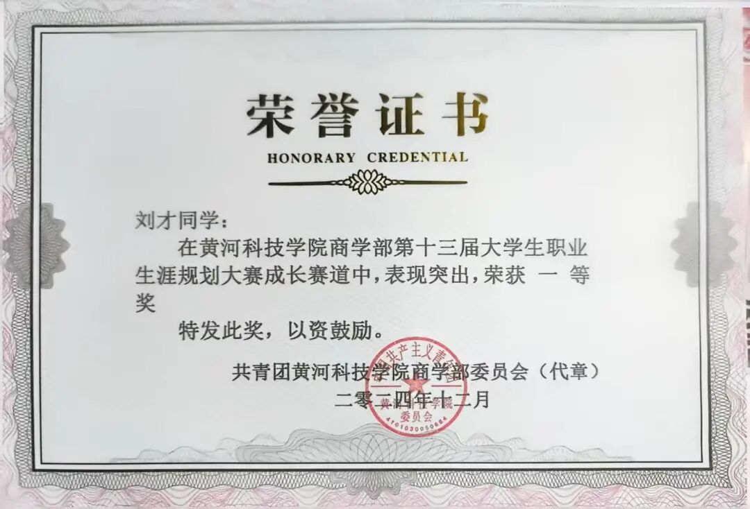 他先后获得第十一届“学创杯”大学生创业综合模拟大赛全国总决赛二等奖,2024年全国大学生智慧审计大赛全国初赛一等奖,2024年“衡信杯”大学生智慧税务大赛河南省省赛三等奖,2024年全国高等院校数智化企业沙盘经营大赛河南省省赛三等奖等学科竞赛奖项。竞中生长,赛出风格是他的信念,每一次竞赛都是一次“破界”的成长,是课堂知识的实战演练,更是对“财务人”身份的重新定义。见过凌晨的月光,登上过颁奖的舞台,有成功,有失意,这是他的竞赛故事——它不完美,但足够真实;它有遗憾,却全是成长。从大学生创新创业训练计划国家级立项到职规赛省级决赛,那些凌晨的坚持,那些反复修改的深夜,那些对着行业报告啃到眼花的执着——它们像种子一样埋进土里,或许此刻看不见生长,但熬过的困顿,终将化作照亮前路的星光,山不会自己走来,但脚步永远向前。