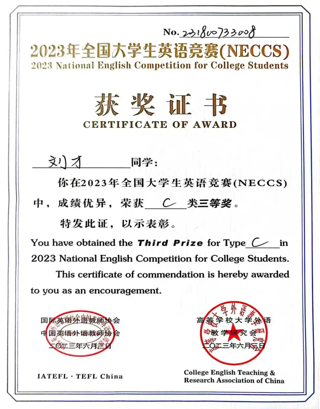 “文以载道,毅以逐梦”。刘才,一名向着理想微光奋力前行的追光者,他以勤奋为笔铺就学业坦途,以坚毅为盾冲破求知难关。逐梦路上,他怀赤诚初心迎挑战,凭执着步履向卓越。他的学习成绩名列前茅,在学科竞赛上多次斩获佳绩,厚积而薄发,坚毅且勇往直前,敢于突破自我,迎万难而赢万难。