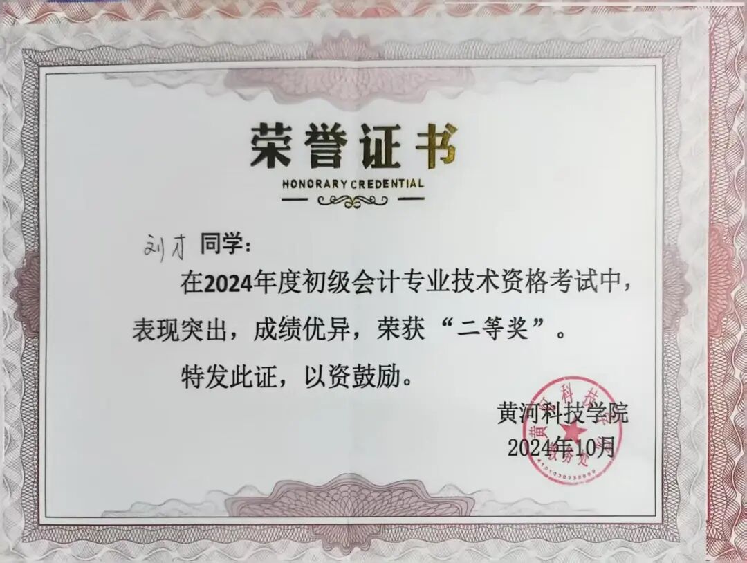 自入学以来,他深知扎实专业基础是未来发展的关键。他始终以"勤能补拙是良训,一分辛劳一分才"为座右铭,他的成绩在班级名列前茅,连续三学期获一等奖学金。在专业学习的道路上,他坚信:没有捷径,唯有深耕。课余时间积极备考各类资格证书,在大一连续通过英语四级、六级,大二以学部第六名成绩通过初级会计考试。学海无涯,他愿做一名坚定的“追光者”,以勤为舟、以恒为桨,在知识的海洋中行稳致远。学习是一个持续积累的过程,在掌握专业知识深度的同时,不断拓展知识的广度,努力成为一名具备法学视野、财会专业素养过硬的复合型人才。