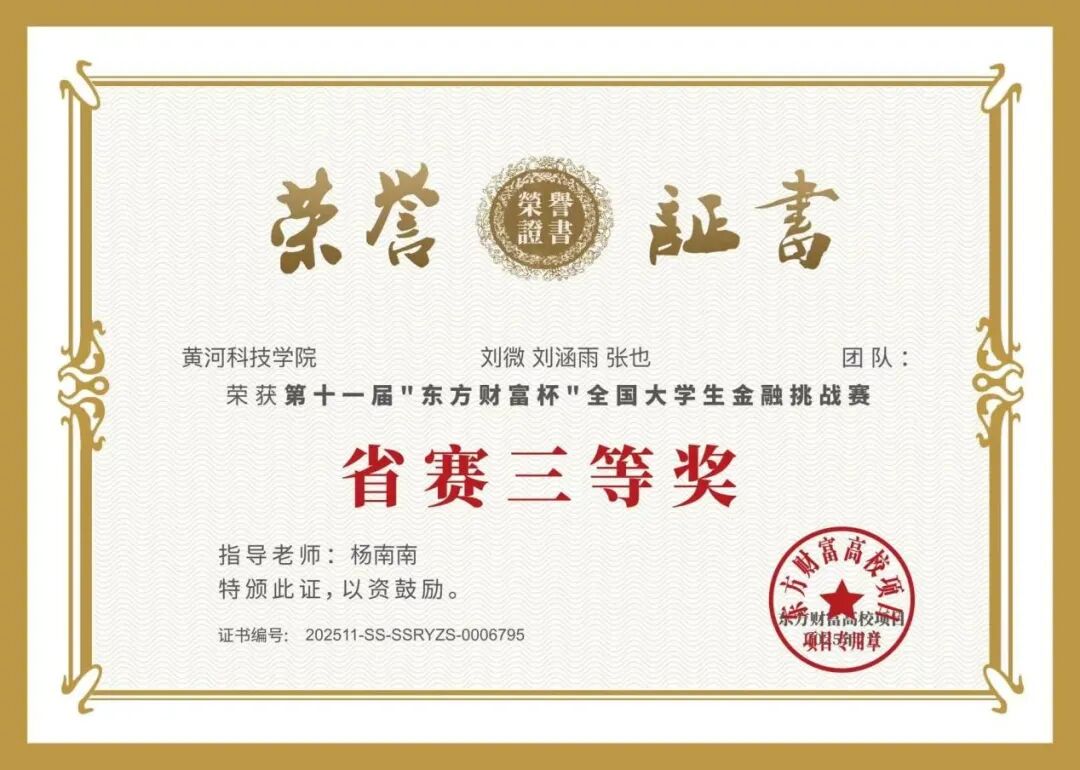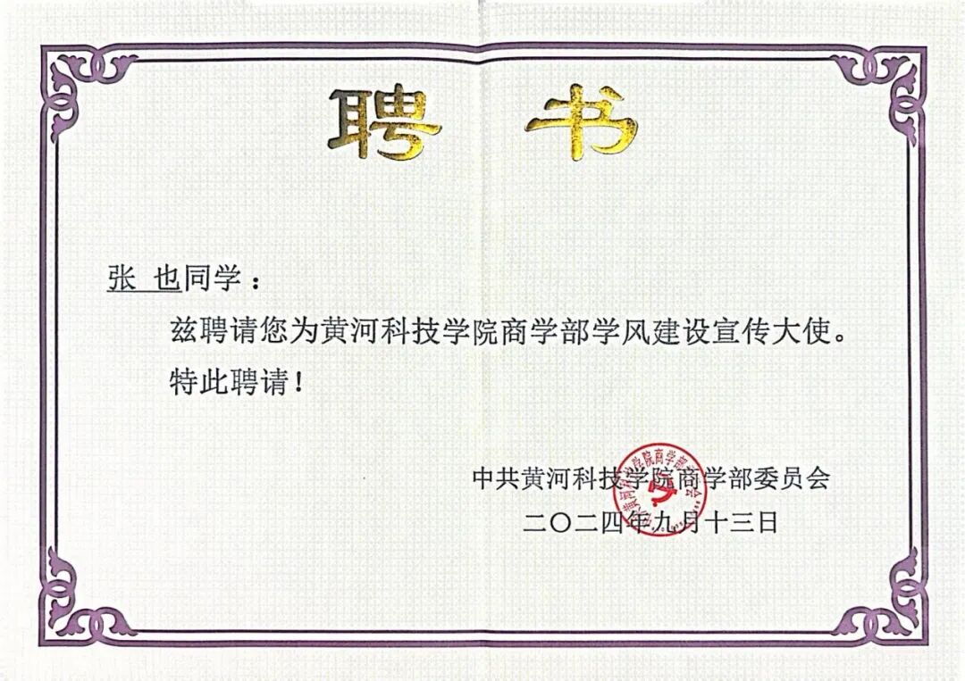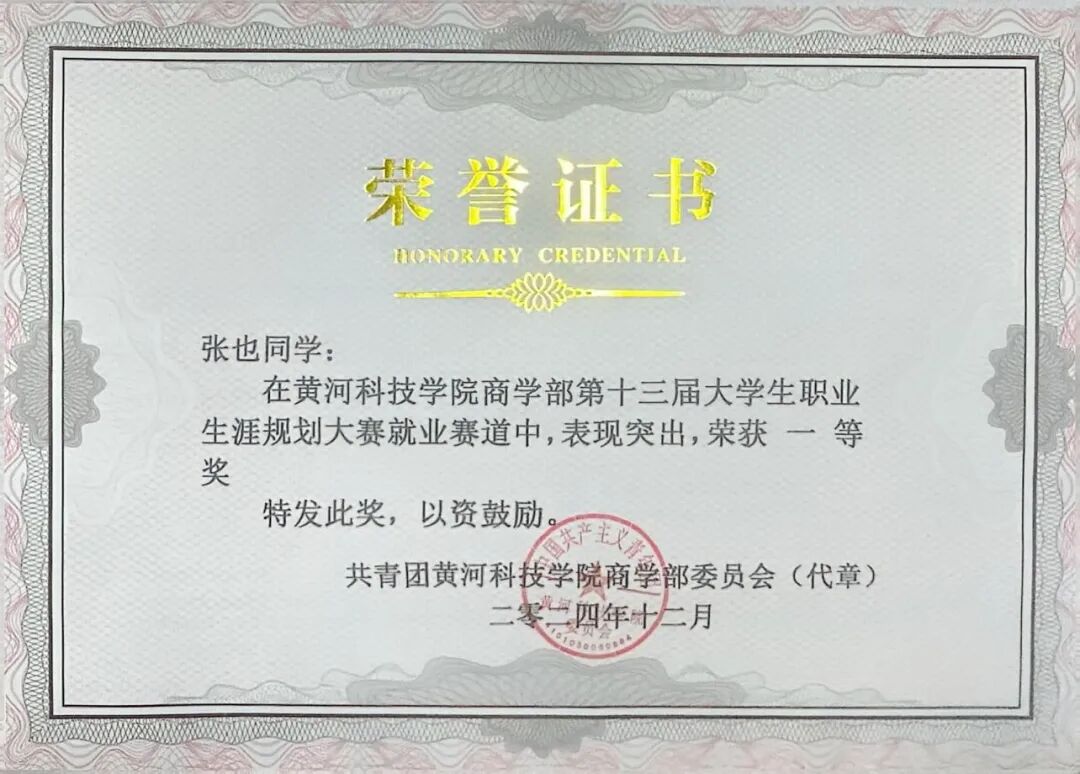 张也,女,汉族,中共党员,黄河科技学院商学部2022级金融学专业本科生,辅修会计学专业。曾获国家奖学金、国家励志奖学金(两次)、河南省三好学生、河南省大学生创新大赛三等奖等三十项荣誉。在校期间身兼数职,始终以服务集体为己任,在多项工作中发挥骨干作用,辐射榜样力量。个人综合素质突出,全面发展。