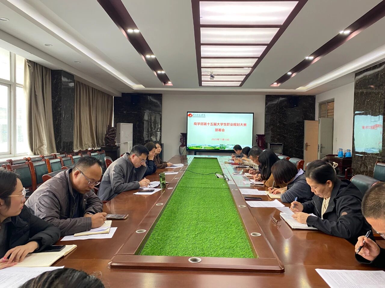 为扎实推进第十五届大学生职业规划大赛各项工作,明确赛事目标、细化职责分工、调动师生积极性,11月12日,商学部在129会议室召开大赛备赛部署会议。分党委书记郑月,副书记、副部长孙常辉,副书记韩瑞萍,各科教中心主任、学科负责老师及学部职业规划工作室全体老师参会,会议由韩瑞萍主持。