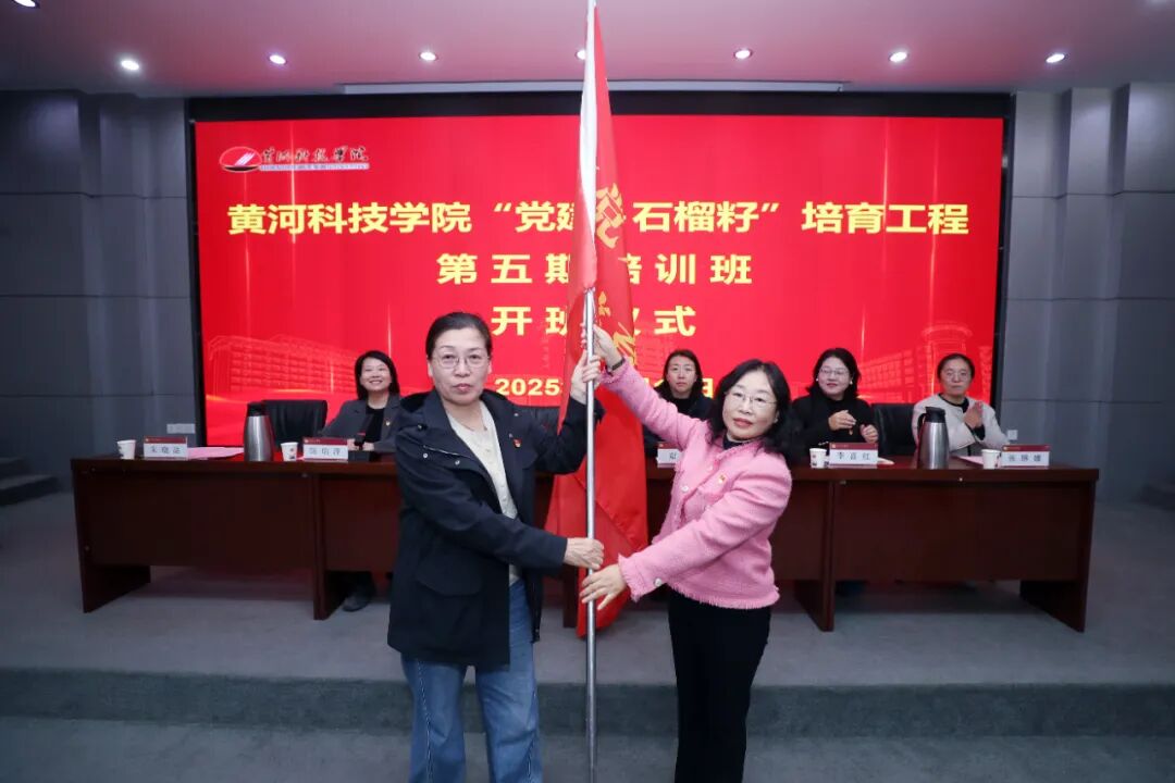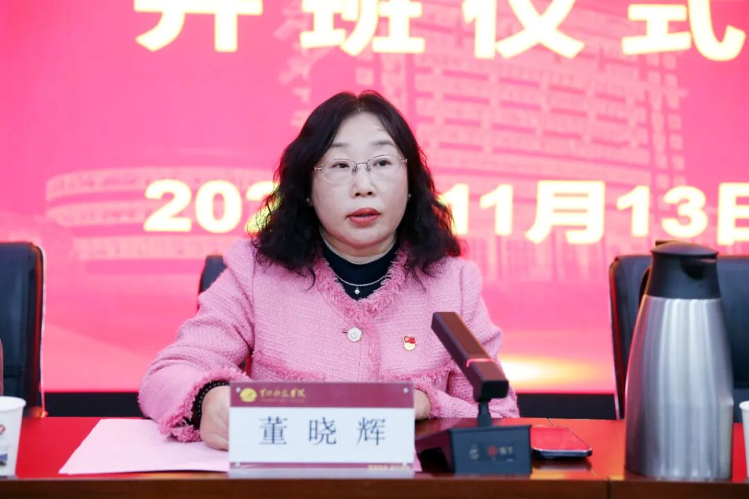 随后,董晓辉为培训班授旗,象征着第五期培训班的使命正式启航。培训班班主任朱晓洁和学员代表刘让玲依次发言。