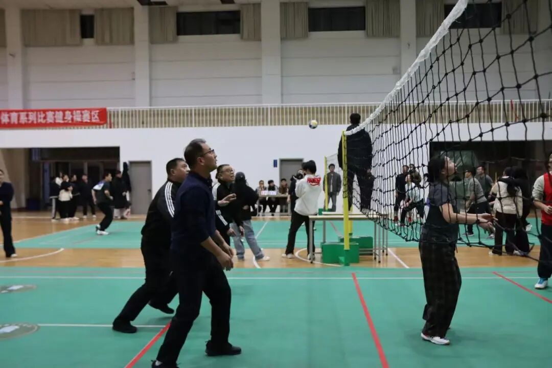 商学部4队由娄欣生主任带队,陈帅、贡建明、徐军辉、司彩霞、张世琦、兰黔丽、刘素勤7名队员积极参与。灵活跑位、积极接应,拦网与进攻互为支撑,赛场气氛持续升温。赛场上气氛活跃而融洽。娄欣生主任全力以赴垫球和传球,指导队员们站位与轮转策略;陈帅面对对方双人拦网灵活进行传球和扣球;徐军辉、贡建明老师总能迅速移动到位并进行反击;两位女老师发球、传球配合默契。他们用行动诠释“文明其精神,野蛮其体魄”的师者担当。