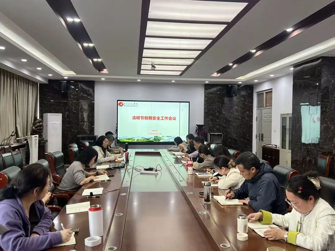 会议首先对清明节假期安全工作进行部署,会议围绕多维度安全管理重点,逐项明确工作要求:一是聚焦人身安全,精准掌握学生动态。全面排查梳理学生出行计划,重点精准掌握返乡、外出旅游学生的去向、同行人员、返程时间等关键信息,建立完善学生出行台账;同步强化出行安全警示教育,严禁学生参与登山等危险活动;严格落实留校学生管理,明确留校原因,杜绝晚归、夜不归宿等违规行为。二是紧盯消防安全,全面排查风险隐患。开展宿舍消防安全专项排查,组织对所有学生宿舍进行全面消防检查,及时消除私拉乱接、违规用电等隐患;加强消防安全宣传教育,提升师生消防应急能力;同步做好祭扫消防安全提醒,引导师生文明祭扫、安全用火。三是严守意识形态与思想安全,筑牢思想防线。倡导文明祭扫新风,引导师生树立绿色、环保的祭扫理念;强化网络安全管理,防范网络诈骗、不良信息传播等风险,守护师生思想与信息安全。