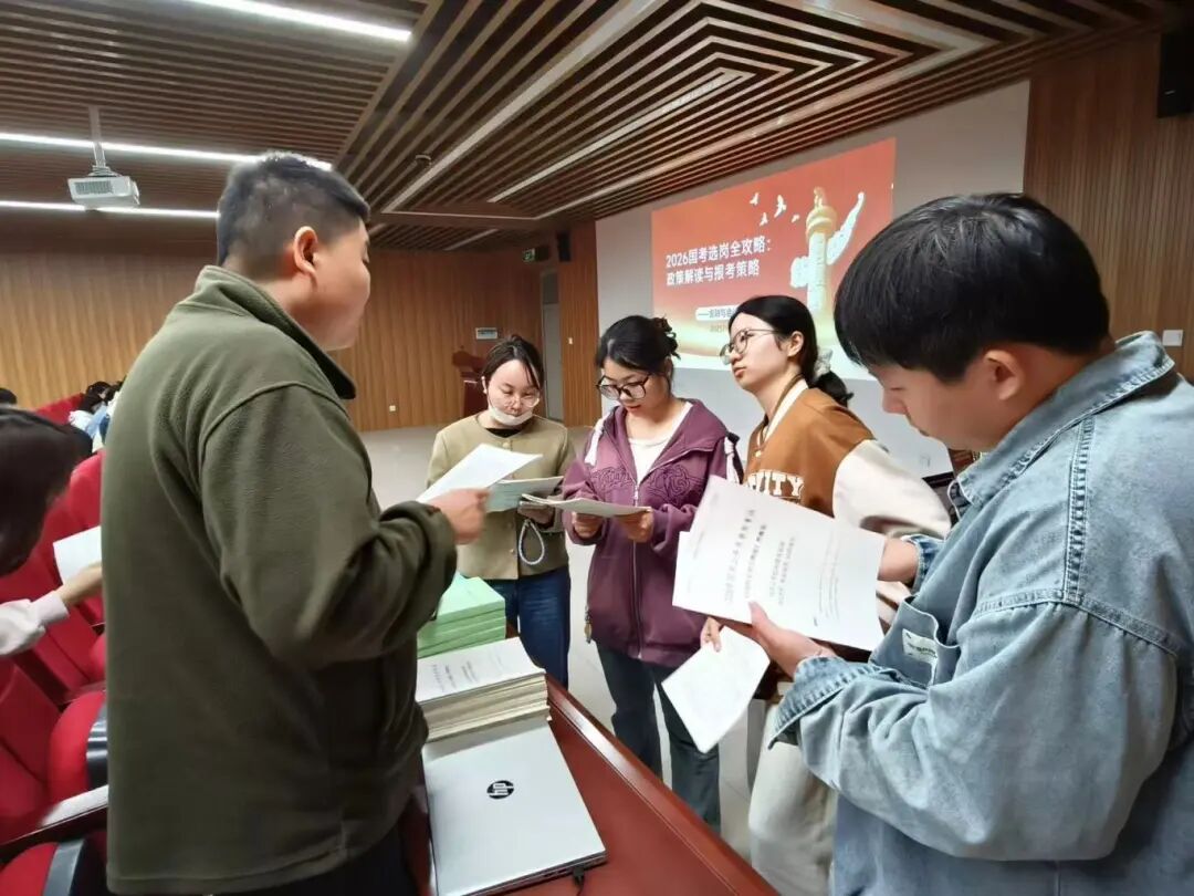 指导会的最后环节,老师一同为有需要的同学进行了实际操作演示,包括如何在官方网站上筛选岗位、填写复杂的报名信息等,耐心解答同学们的疑问,确保每一位同学都能熟练掌握国考报名的实操要点。