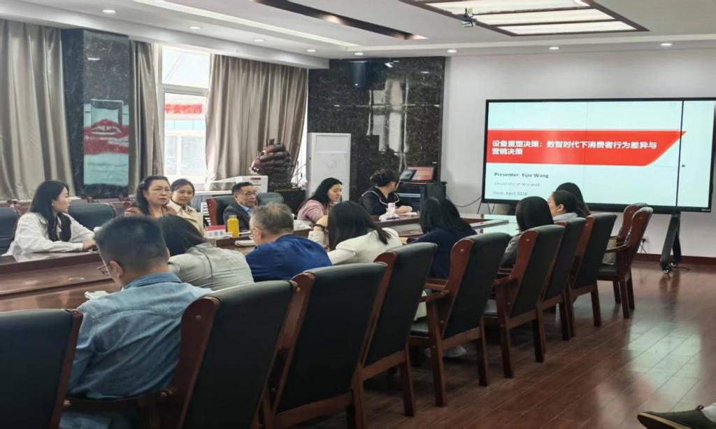 王伊洁博士现任华威商学院(Warwick Business School)市场营销学助理教授,博士毕业于香港理工大学。其研究兴趣涵盖消费者决策、社会影响力及视觉营销。她以“设备重塑决策:数智时代下的消费者行为差异与营销决策”为题,重点分享了其最新研究《设备类型对可持续消费行为的影响:探究自利动机的作用》。她指出,随着移动端消费日益普及,设备类型(智能手机 vs. 个人电脑)会通过影响消费者的自利动机,进而改变其可持续行为。通过六项实验(其中五项为预注册)发现,智能手机用户表现出更强的自利动机,参与可持续消费的可能性显著低于个人电脑用户。针对这一现象,王博士提出了两种有效干预措施:一是在产品展示中嵌入内在的自我利益诉求,二是提供外在的绿色奖励作为激励。这些干预能够有效削弱移动决策对可持续性带来的负面影响。王伊洁博士还结合自身论文发表与审稿经验,分享了国际高水平科研成果发表的前沿动态、选题策略及投稿注意事项。与会教师就研究设计、期刊选择、审稿回应等问题与王博士进行了热烈交流。
