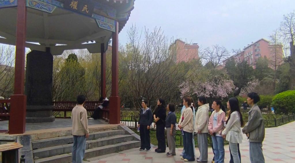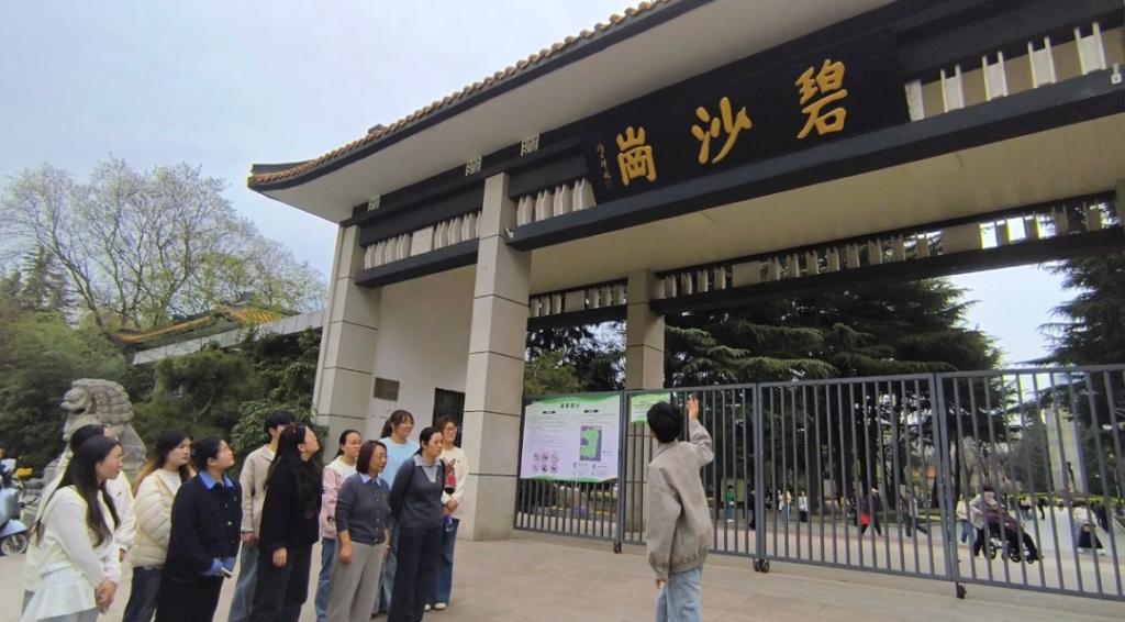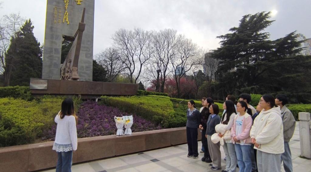 清明时节,缅怀英烈。4月2日,外语科教中心学生党支部在各书记带领下,赴碧沙岗公园开展“清明祭英烈 初心永不忘”主题党日活动。全体党员实地探访革命遗迹,重温入党誓词,在庄严肃穆的氛围中接受红色教育,传承革命精神。活动中,党员代表文静哲、郑远舟、张婉晴依次讲解碧沙岗的红色历史。在三民亭前,大家了解到这座由冯玉祥将军1928年主持修建的建筑,由民族、民权、民生三座亭阁组成。亭内“碧血丹心”汉白玉碑与祭文碑刻静静矗立,诉说着北伐先烈的赤诚与壮烈,让大家在清明时节更深刻感悟革命先辈的家国情怀。