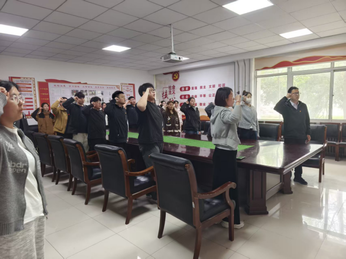 仪式上,全体党员面向党旗肃立,2025年新发展预备党员举起右拳庄严宣誓,铿锵誓言彰显忠诚担当;2024年下半年发展党员同步重温誓词,进一步坚定理想信念。