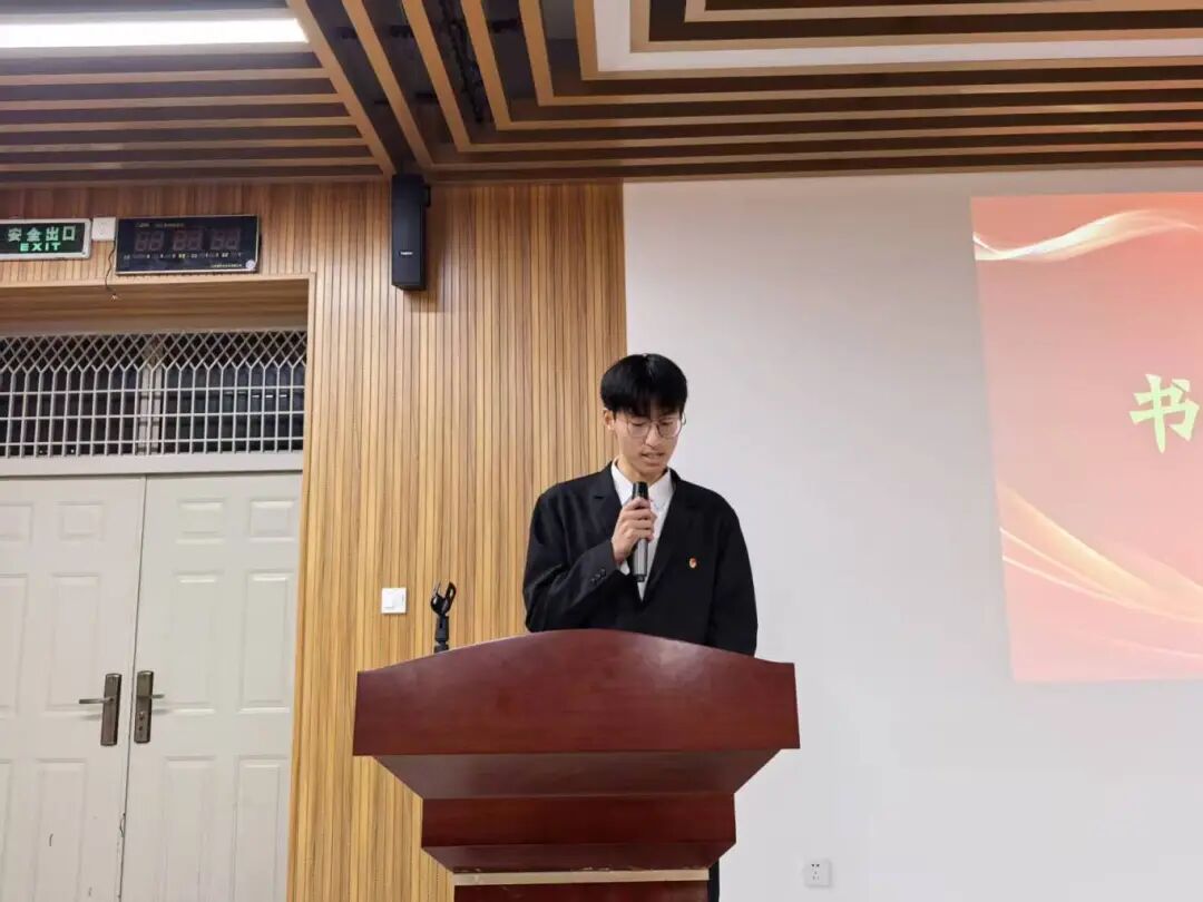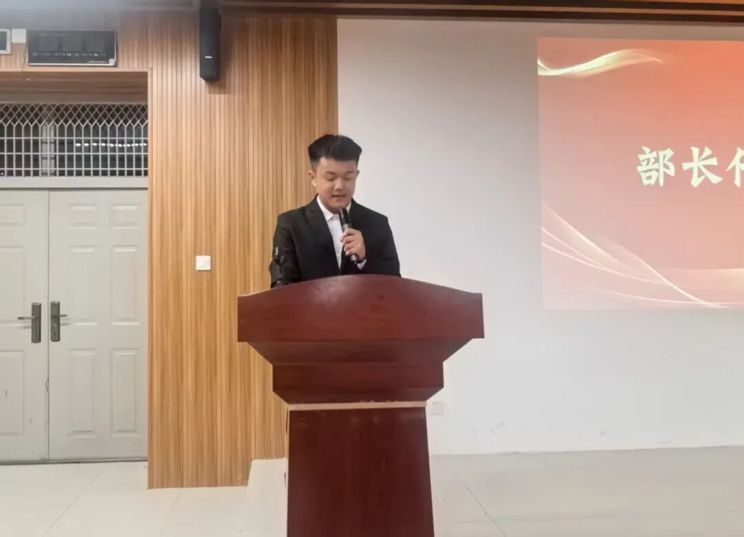 接着是代表成员发言环节,首先由商学部团委书记团代表黄俊涛上台发言,书记团成员作为团委的核心力量,对这份工作的情感与投入,是全体成员并肩前行的底气。他一方面分享过往工作经验与感受表达自己接续奋斗的决心与毅力,一方面对新成员表示热烈欢迎并寄予厚望,使新成员汲取前行的勇气。最后由商学部团委部长代表李家傲上台发言,他与团委的故事温暖了每一位刚加入的伙伴,也让成员们感受到团委大家庭的包容与活力,看到了团委成员们对工作的热爱与坚守!