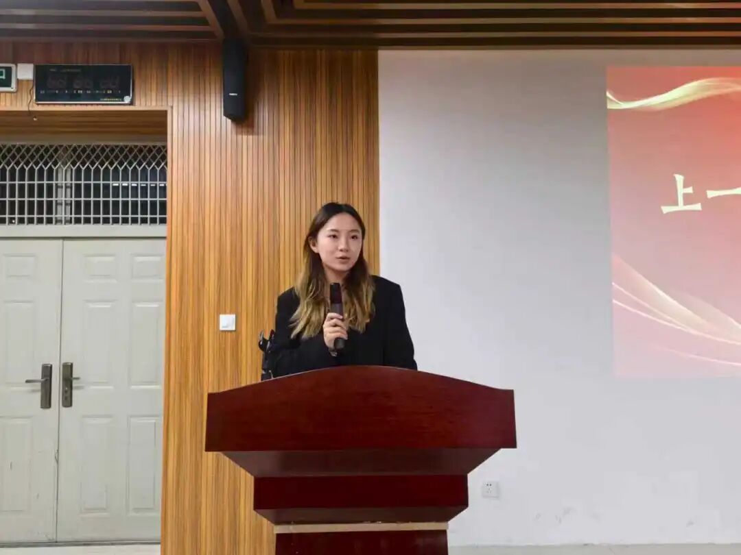 会议伊始,全体成员共唱《光荣啊,中国共青团》,在激昂的歌声中重温初心,凝聚力量。接着,陈晨书记发表讲话。她充分肯定了过往岁月取得的优异成绩,特别是在思想引领、志愿服务、社会实践等特色工作中形成了鲜明品牌。她对老成员表示深切感谢并热烈欢迎新成员,强调作为团委组织的一员,应增强责任感,在工作中秉持严谨认真的态度,不断提高自身能力做有识青年,为商学部团委发展添砖加瓦。随后,张铃作为上一届书记团代表上台发言。她回顾过往工作的经历与收获,对自己即将卸任表达强烈的不舍并对新上任成员提出具体要求,确保工作衔接平稳。