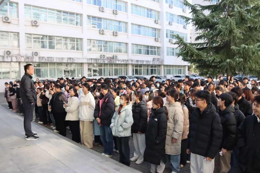演练启动前,韩瑞萍强调,消防演练绝非“走过场”,而是一堂关乎生命安全的“实战必修课”。全体学生须以严肃认真的态度主动参与,彻底摒弃松懈思想,在高度仿真的模拟场景中沉浸式体验火灾逃生流程,真正把逃生技巧学深悟透、把应急技能练精练强,为应对各类真实险情筑牢坚实可靠的安全防线,切实守住生命安全底线。