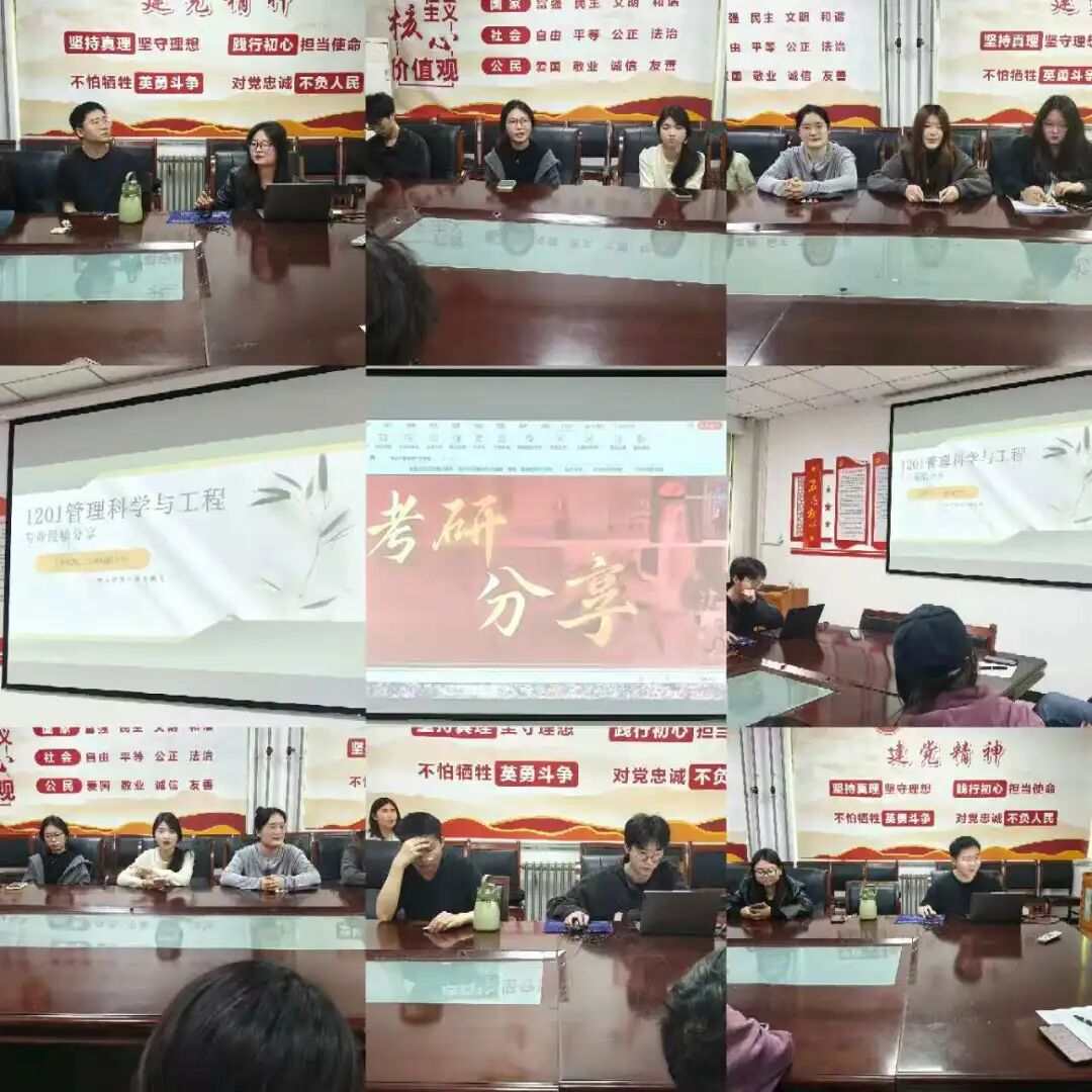 为切实帮助2023级工商管理、物流管理专业考研学子理清备考思路,破解复习难题,明确考研方向,4月14日,2023级工商管理、物流管理专业考研学生在110会议室成功举办考研经验分享会。本次分享会特邀2022级考研上岸的优秀师兄师姐分享,此次分享会由张莎主任主持。