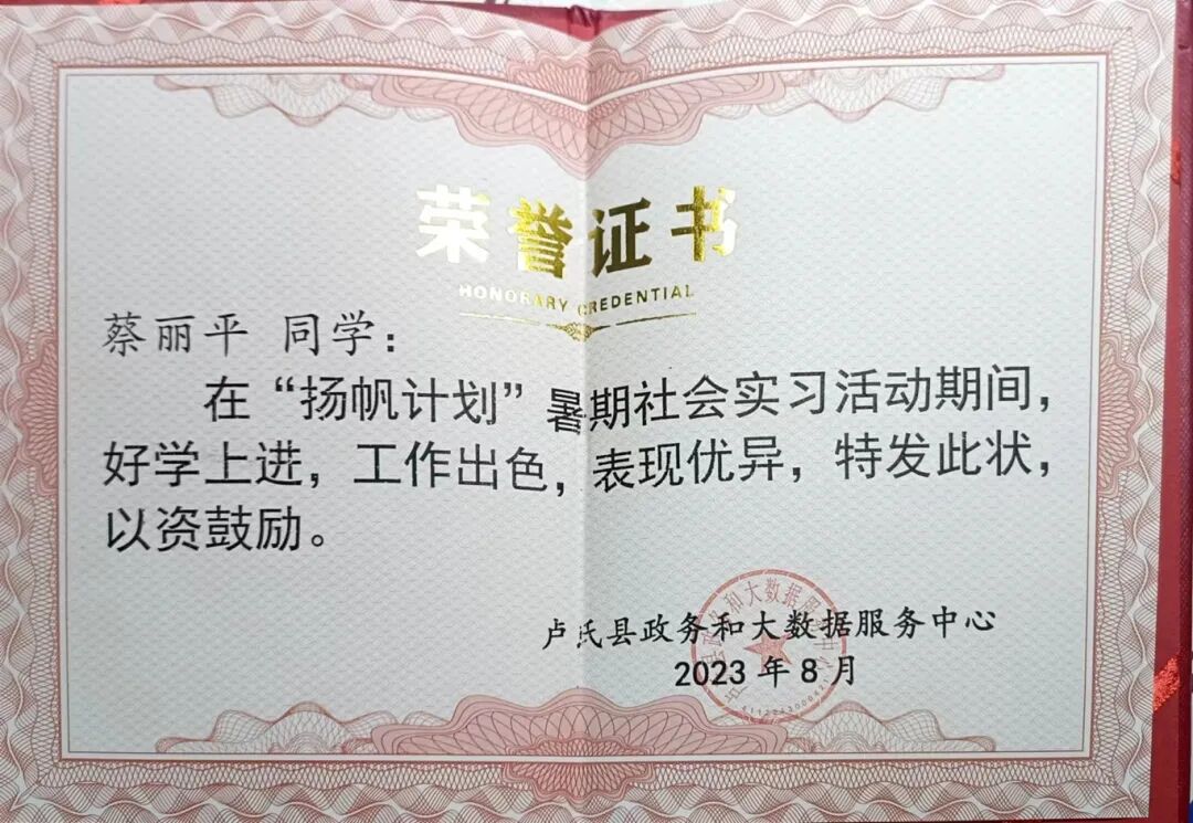 关于社会实践,有精力的话,我是建议大家多参加的,23年暑期,我在县共青团公众号上看到了“扬帆计划”志愿者招聘,起初以为有600薪资,兴冲冲报了名,还担心自己履历不好选不上,但依旧还是“敢为”两个字,即使畏惧也还是报了名,在县政务服务中心待的一个月,没有薪资,没有懒觉睡,但我依旧乐此不疲每天骑着电动车往返,我很欣喜,我认识到了一群志同道合的青年人,是卢氏县的青年人,我们从不是“垮掉的一代”。