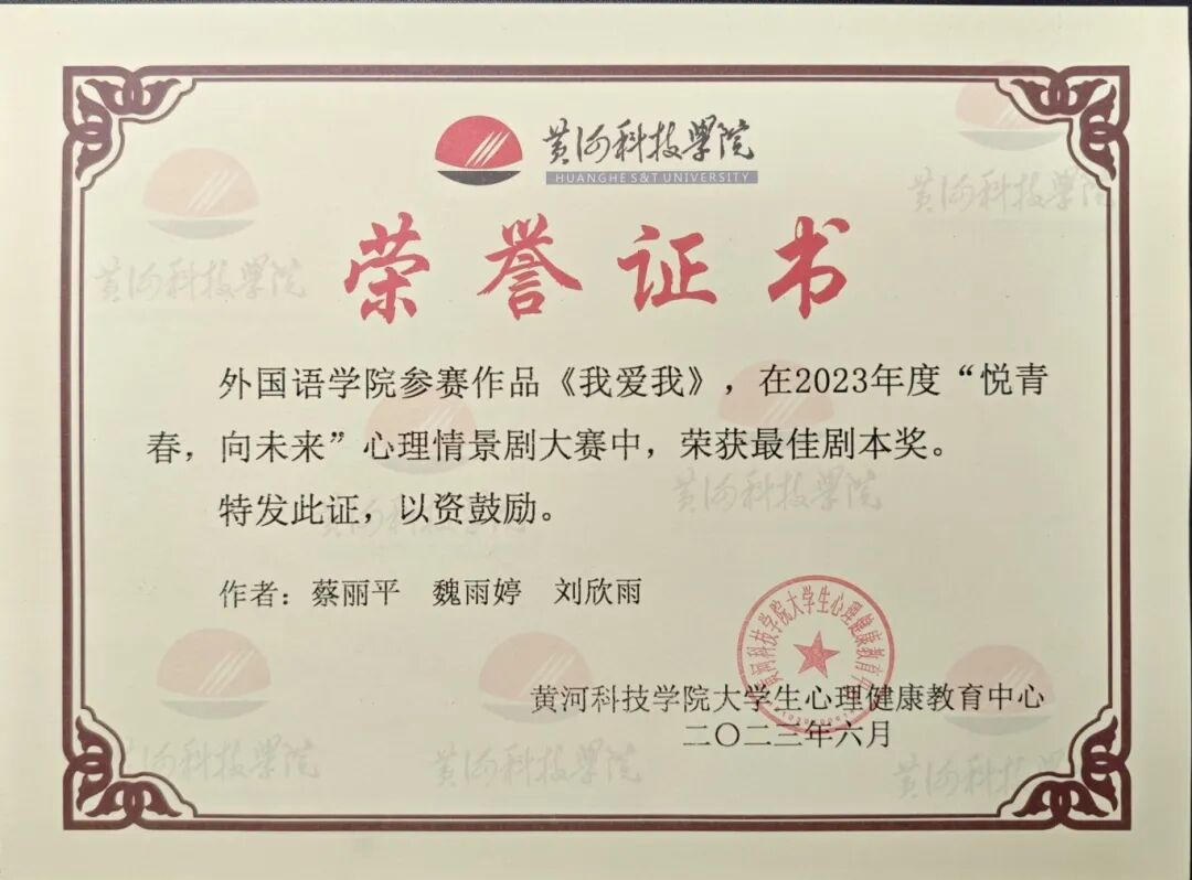 作为心理委员,在23年、24年,先后代表班级呈交了两个作品,一个心理情景剧《我爱我》,一个心理微视频《体验》,有幸都被选中作为院部代表参赛,这也让我与温柔和善的张薇薇老师有了更多羁绊,一次次排练,一次次剪辑修改,让我在大学这个缤纷小世界,竟然荣幸地成为过一名编剧,一个导演,这哪是以前“困在”山里的我敢想的。可真的实现了,在黄科大,只要有能力,只要“敢为”,就一定有属于我们的舞台去“大放光彩”。