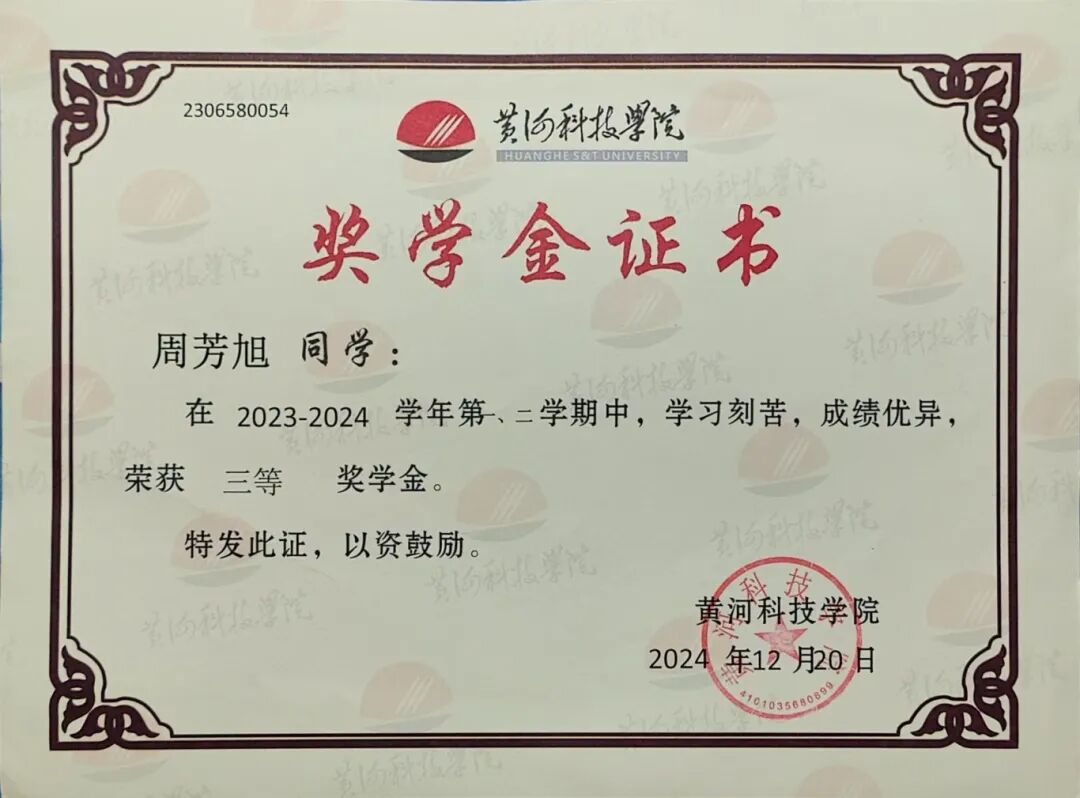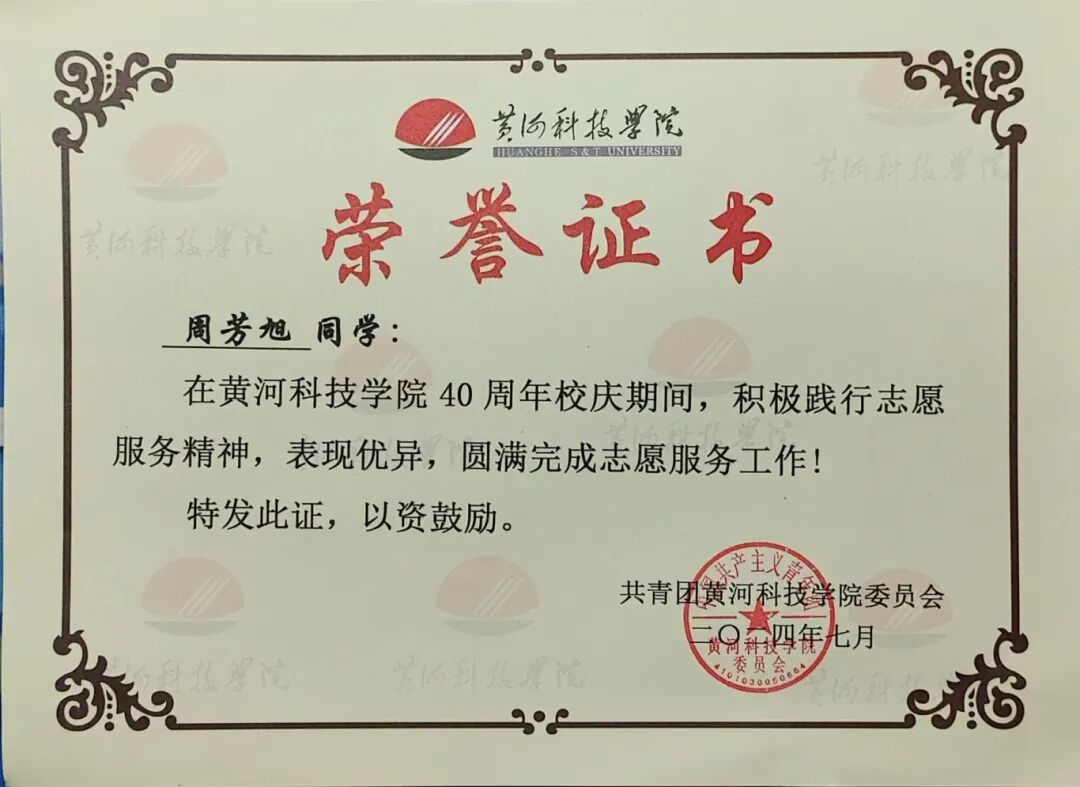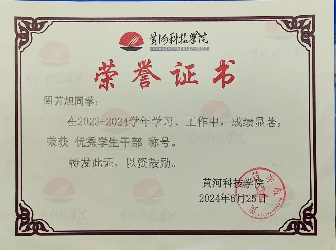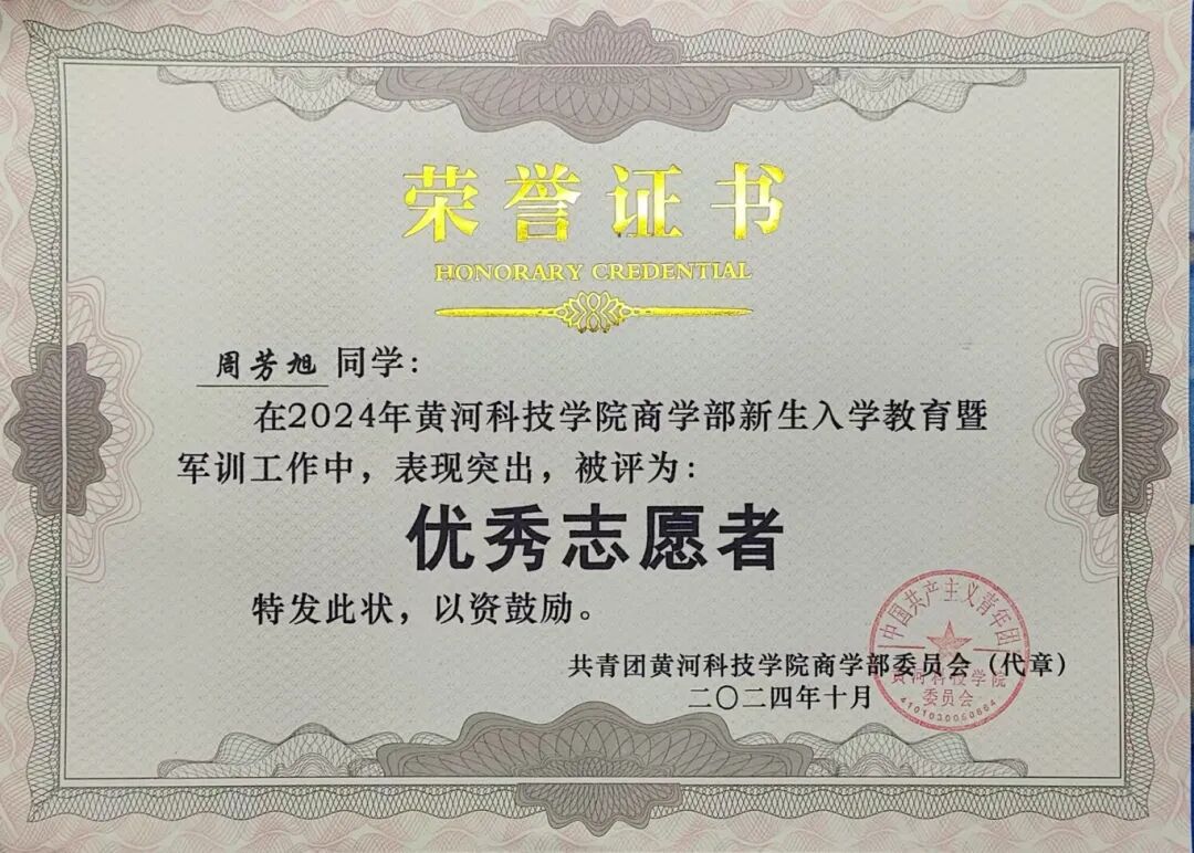 周芳旭,男,中共预备党员,黄河科技学院商学部2023级现代物流管理专业二班,担任班级班长,经济与管理科教中心团学组织团总支副书记助理,获得过“国家励志奖学金”、“河南省三好学生”、“校级三等奖学金”、“校级三好学生”、“校级优秀学生干部”“校级文明网民”、“校级优秀志愿者”等荣誉。