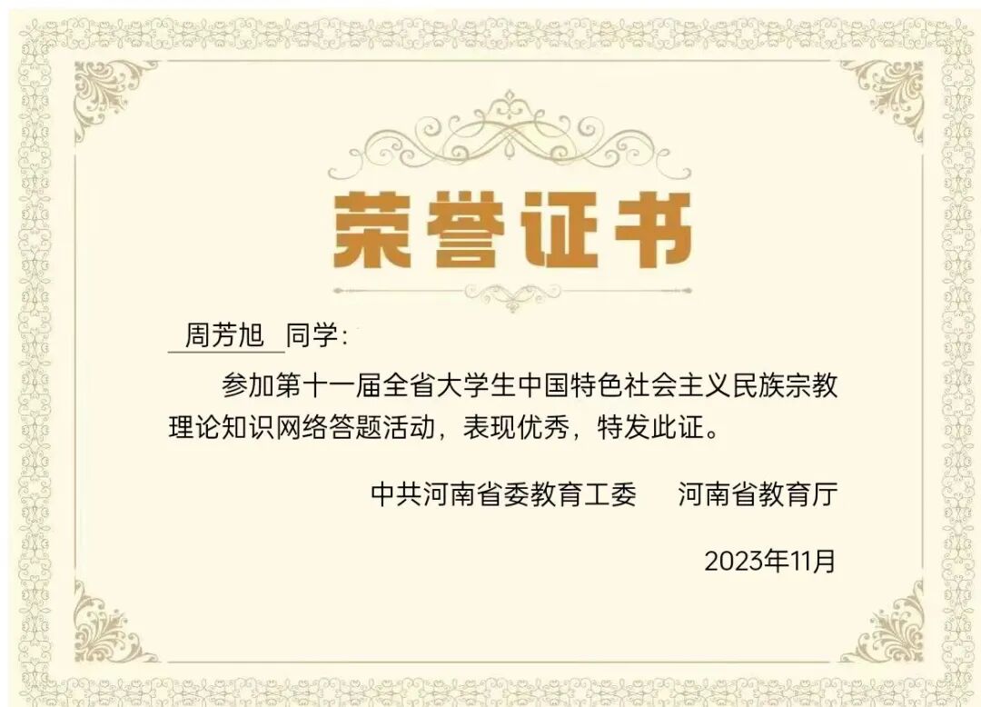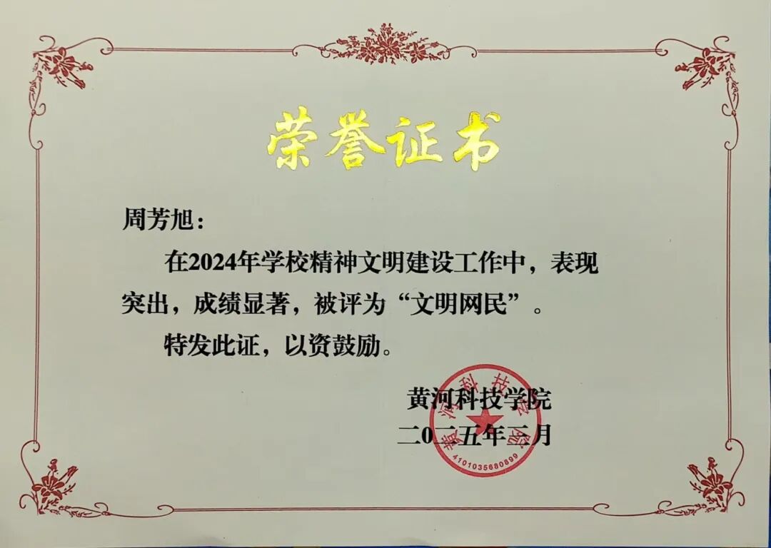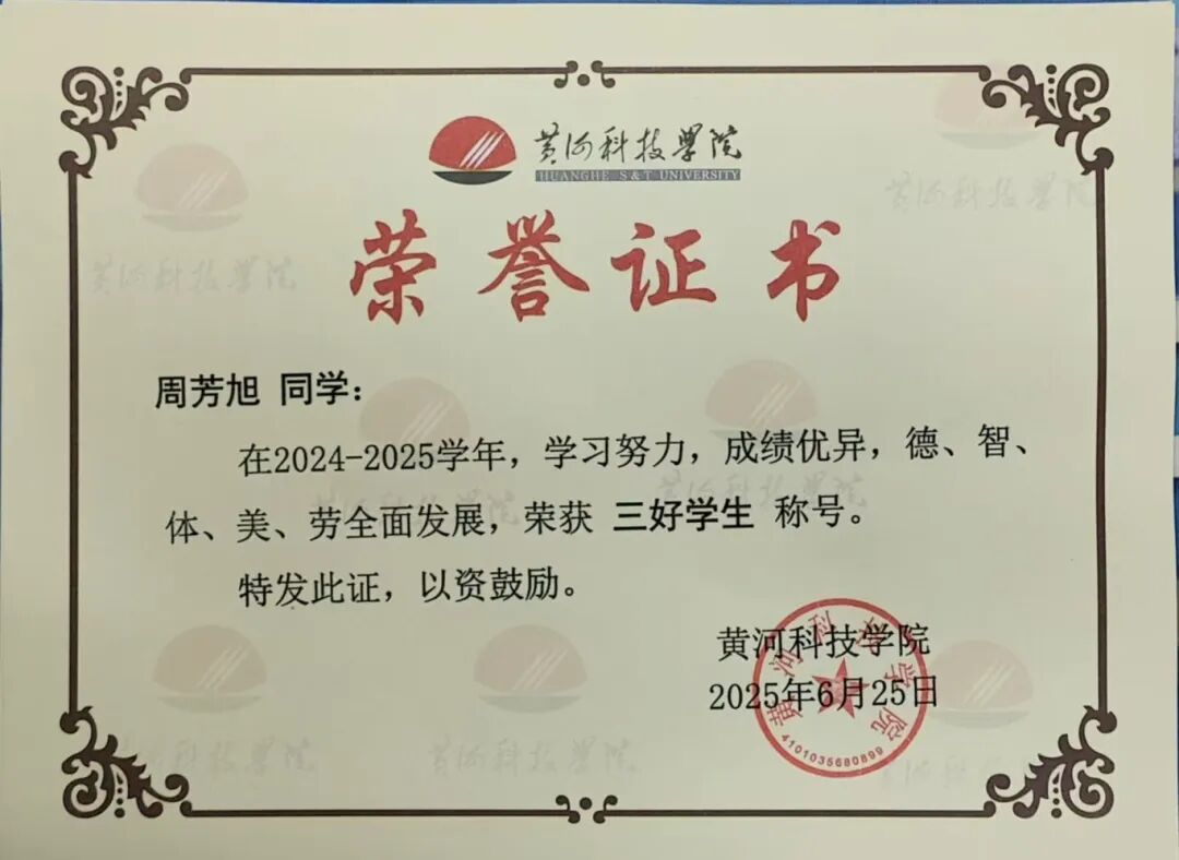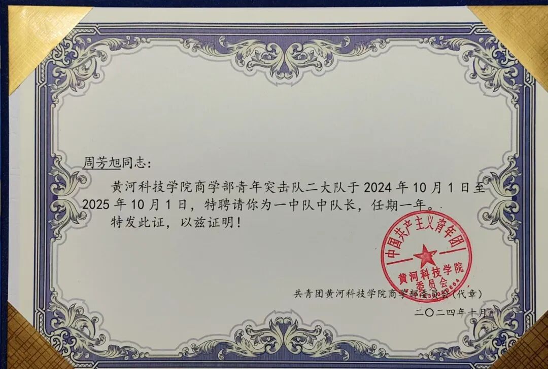 周芳旭,男,中共预备党员,黄河科技学院商学部2023级现代物流管理专业二班,担任班级班长,经济与管理科教中心团学组织团总支副书记助理,获得过“国家励志奖学金”、“河南省三好学生”、“校级三等奖学金”、“校级三好学生”、“校级优秀学生干部”“校级文明网民”、“校级优秀志愿者”等荣誉。